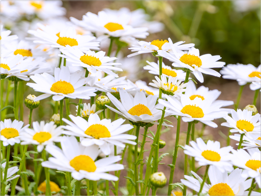 春の風に吹かれて、ふわりとそよぐマーガレット。