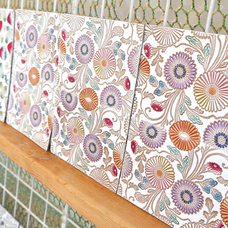 ▼華麗な手つきであっという間に真菰の粉が乗せられて、柄の輪郭線がくっきりと浮かび上がってきます。
