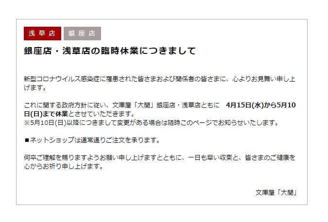浅草店、銀座店ともに臨時休業中のため、ネットショップにてご注文承ります