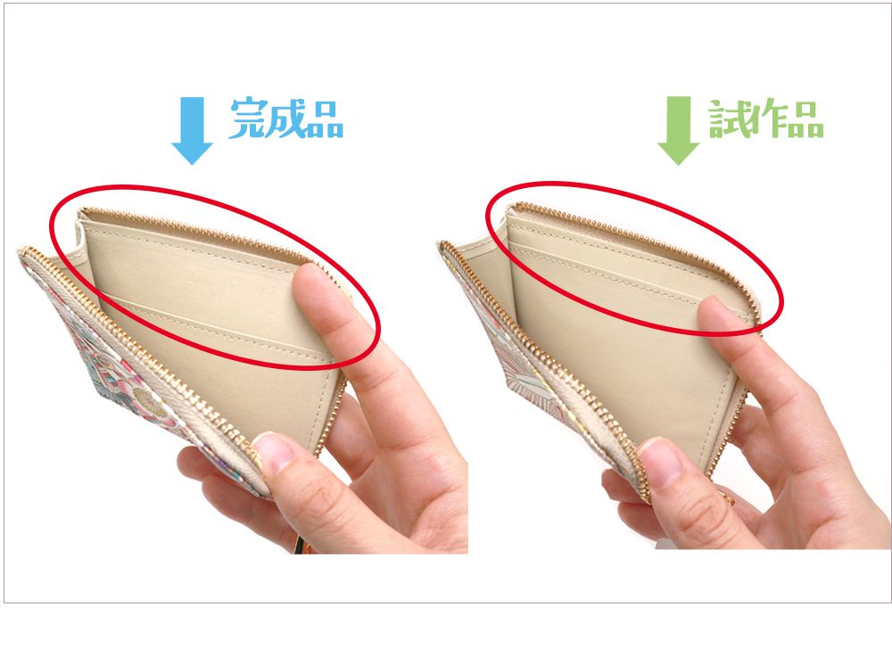 ▼内装のカードポケット 完成品は段の高さが低くなりました。