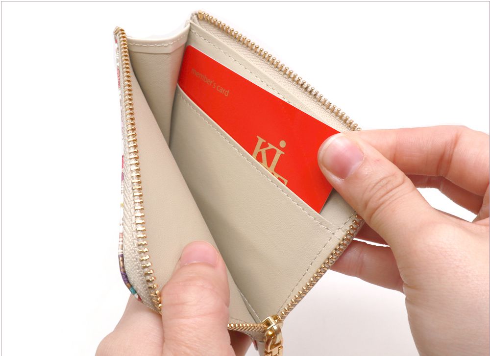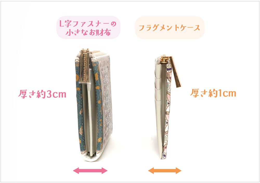 L字ファスナーの小さなお財布が約3㎝の厚み、