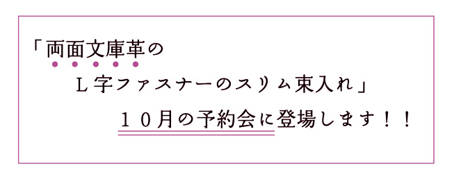 こちら、予約会アイテムとして年に数回登場する、【両面文庫革のL字ファスナーのスリム束入れ】です。