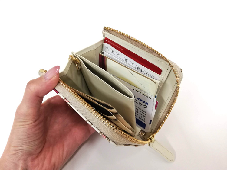(私は、お札10枚、カード8枚、レシート類、小銭15枚くらいを入れて愛用しています)