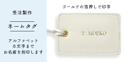 文庫革のプレートに、金のホットスタンプ(いわゆる箔押し)でご指定のお名前をアルファベット