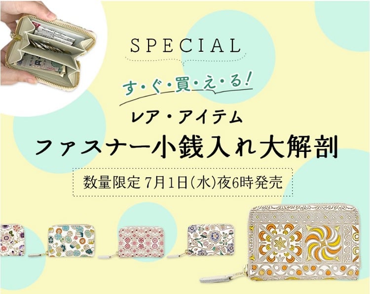 今月7月1日(水)夕方18時から始まる予約会、ファスナー小銭入れ