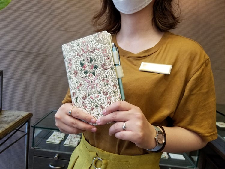 銀座店にある新書サイズの手帳カバーのサンプルと比べてみると