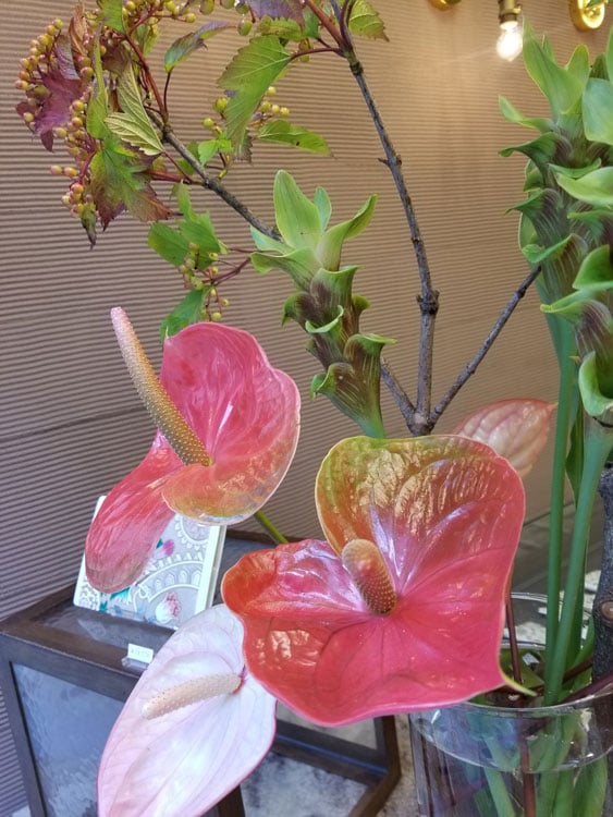 銀座のウインドウの花たちも暑さに負けじと咲いております