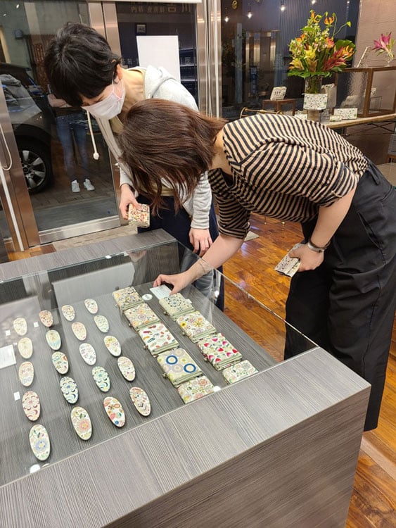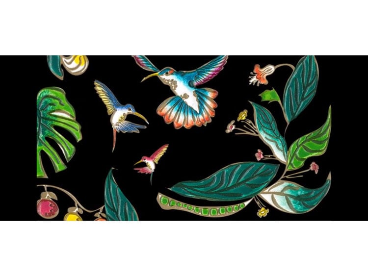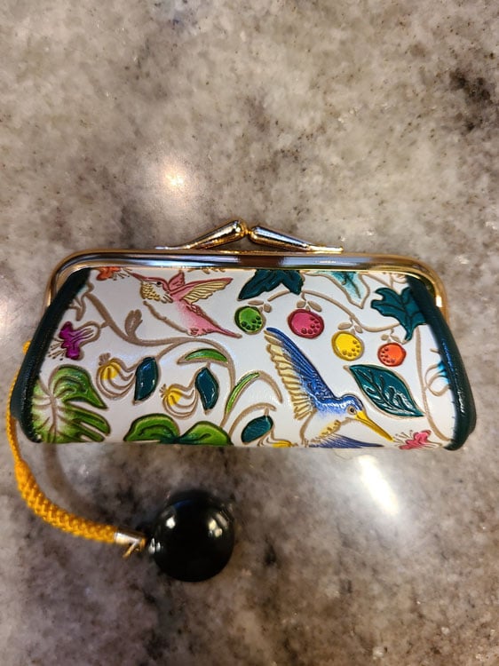 印鑑ケースの小さな空間に色違いのハチドリが贅沢に2羽いるっていうのがまた美しい…