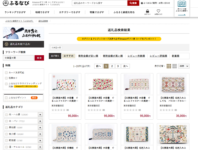 ☆彡文庫屋大関のお財布や小物が返礼品として選べるサイトは、現在4つ☆彡