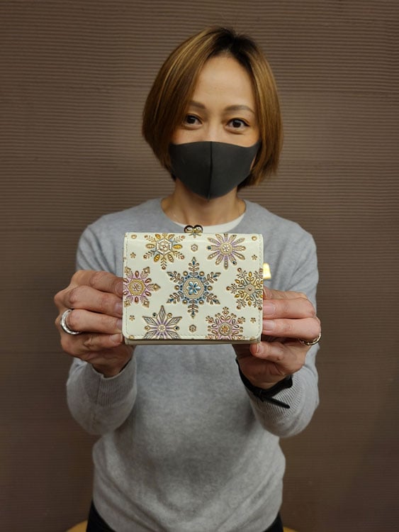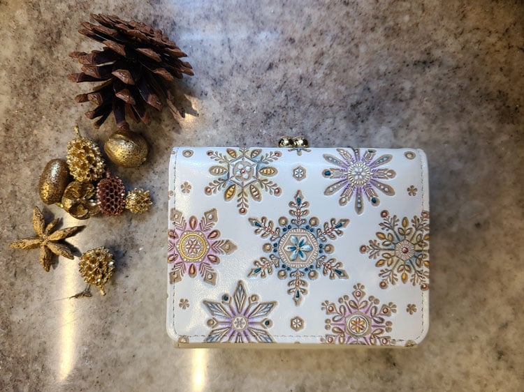 小さなバッグにもすっぽり入るミニマルさが人気の形ですが、雪の結晶のモチーフが小さな空間にきれいに入っているところがおすすめです