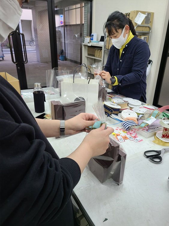 12月19日の発売に向けて、先日「サンタ袋」の準備をして参りましたのでその様子をちらりとご紹介します