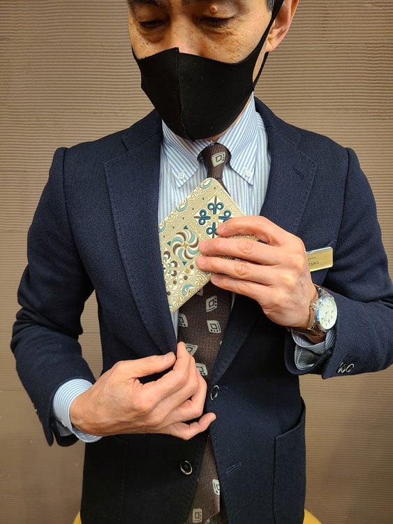 まずは銀座店の男性スタッフ、Hのひとえ束入れ