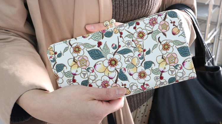 文庫革が映えるお財布!持っているだけでもテンションが上がってしまうのです。ファッションのアクセントにも大活躍よ