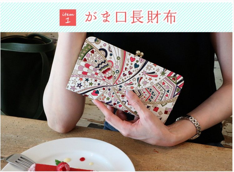 大きな文庫革がゴージャス、カードポケットも充実の【がま口長財布】