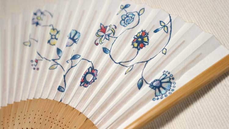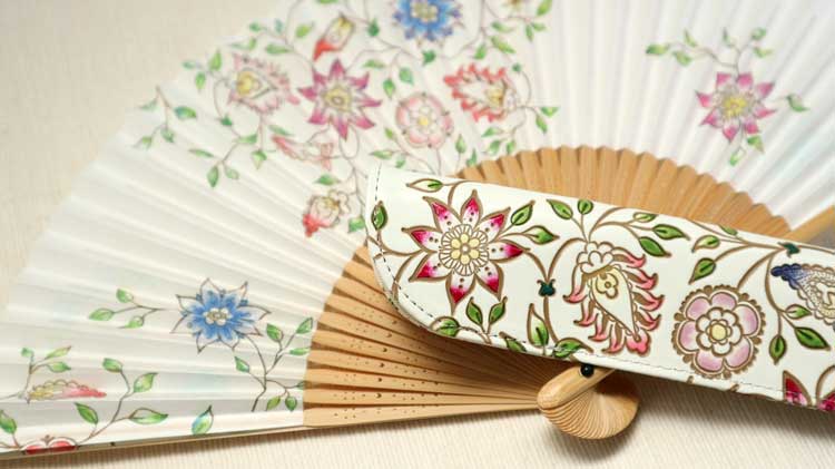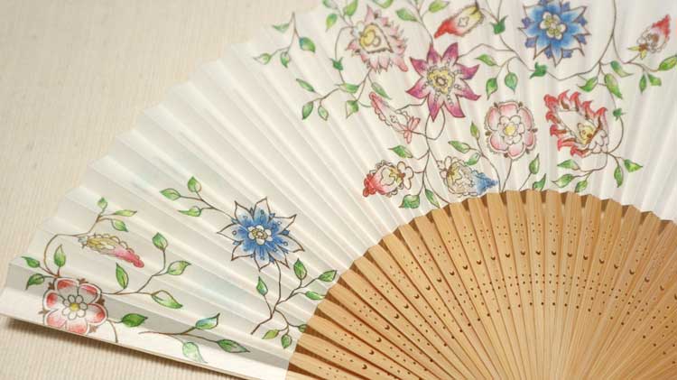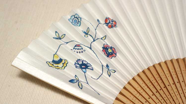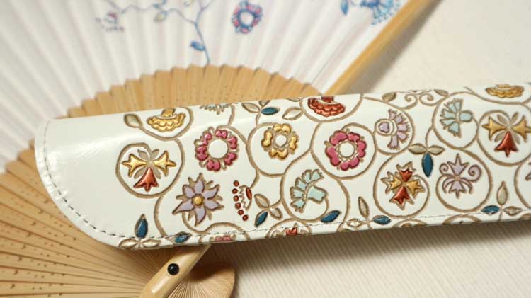 白地の地紙にはパール加工がほどこされて、仰ぐたびに控えめにきらめきます
