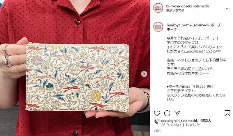 ソラマチ店インスタにてスタッフ私物のポーチをご紹介しています