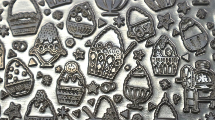 以前のブログで紹介したこちら、新柄の型押し用の版なのですが…