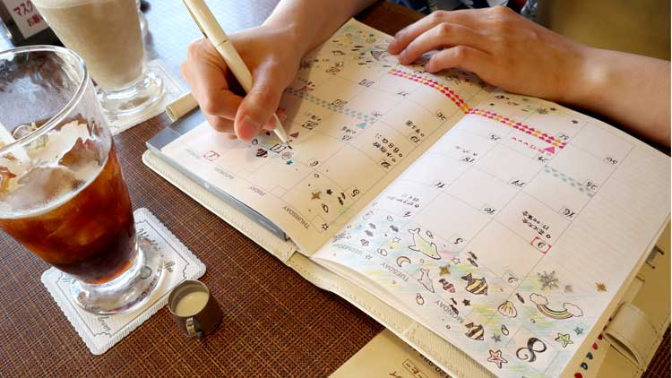 スマホでいろいろできる時代ですが、手で書くほうが頭に残りやすいので手帳は手描き派の方、今も多いですね