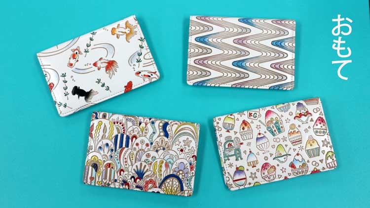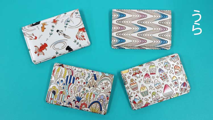 通常のパスカードホルダーは裏面が無地の牛革なのですが、限定アイテムは名前の通り両面文庫革でパッと華やか
