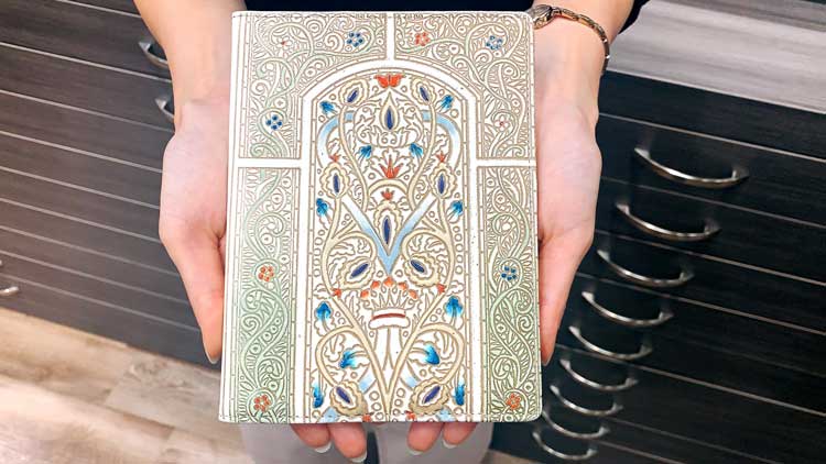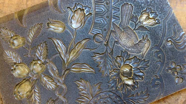 鸚鵡はほかの版にくらべて凹凸が深いので、その分型押しにも力が必要で大変ですが、完成した時の凹凸感が素晴らしい!