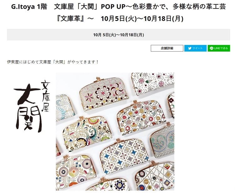 以前のブログでお伝えした【伊東屋さんのシステム手帳サロン開催(10/7(木)~10/25(月)】とほぼ同時期に、文庫屋大関も伊東屋さんの1階で出張販売いたします