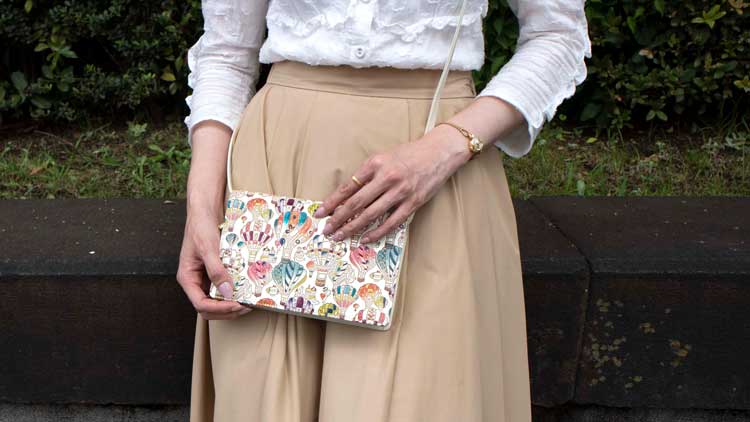 そしてこちらも大きな文庫革が映えて素敵な【ショルダーウォレット】、スマホも入る、ポシェット型のお財布です。お出かけはこれひとつでOK、持ち物がコンパクトな方って憧れちゃうのよね、これならわたしもコンパクトにできそう