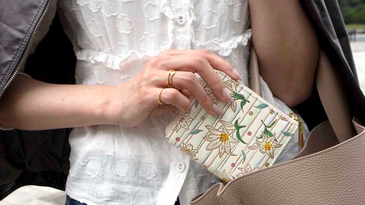 こちらもお財布の中では軽量(重量約100g)で、厚みも薄いので、ちいさなバッグにもすっと入ります