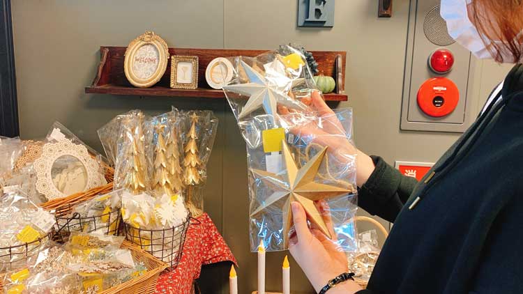 ディスプレーに使うリボンやオーナメントの買い出しにやってきました