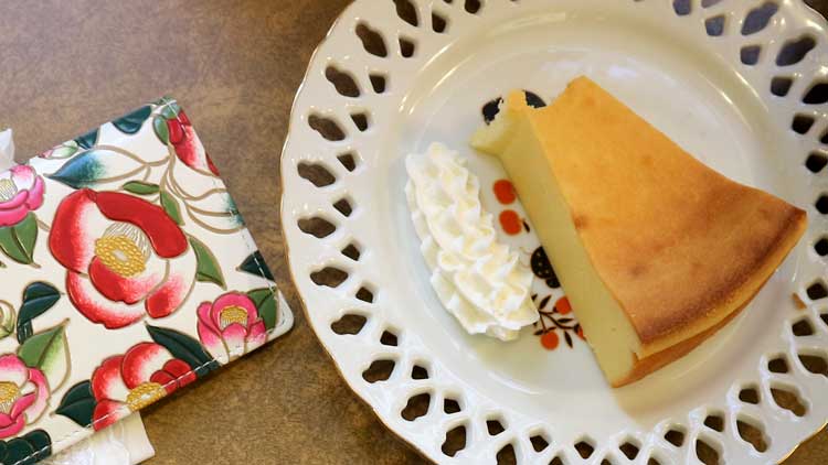 チーズケーキも美味だし、ホイップも素敵かわいいし、金の縁取りのお皿も最高…(ひとくち食べちゃってて失礼します🍰我慢が…)