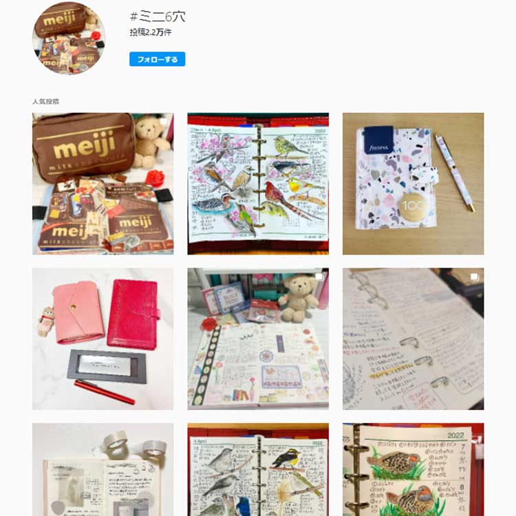 余談ですけどインスタグラムのハッシュタグ「#ミニ6穴」で検索すると、2万件以上の投稿…!
