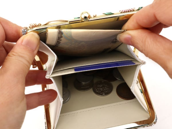 お札が2つ折りに入るがま口があるといいのにな…というお声から誕生した新アイテム👛