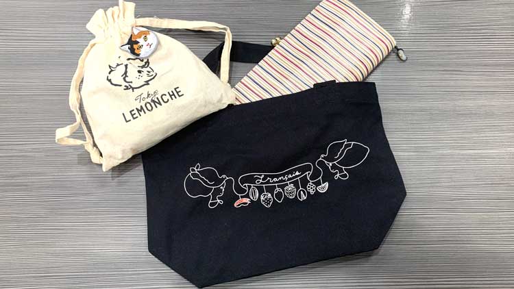 さすが期待を裏切らないお嬢さん👩🏻💕お菓子やさんのスタンプをためてもらったトートバッグと、これまた別のお菓子屋さんの巾着袋!(東京駅などにある東京レモンチェというお菓子だそうです📝)おいしいお菓子情報アンテナすばらしい…😋🧁