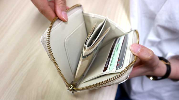 ファスナーを開けると、お札、小銭、カードがどれもすぐ取り出せることと、長財布ですが軽いのも人気の理由のようです