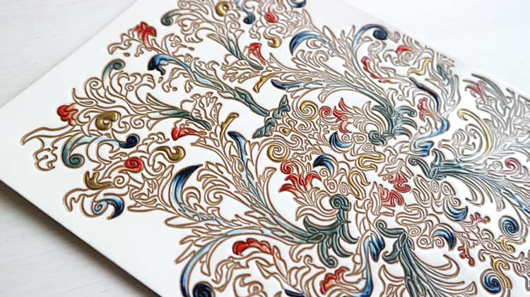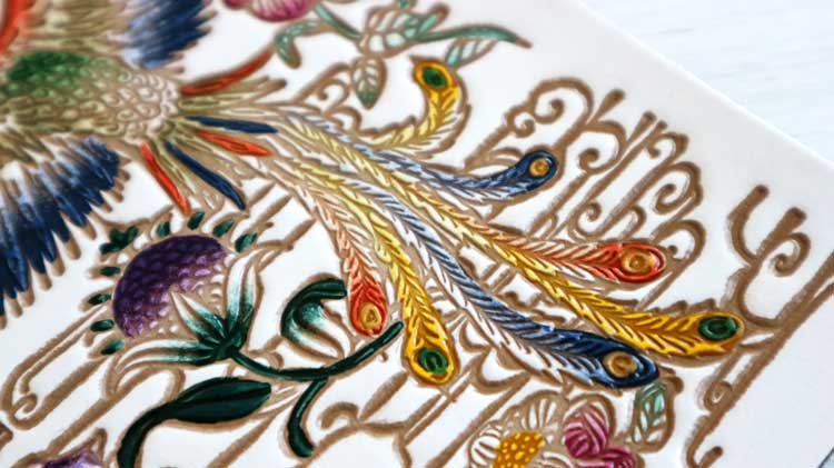 宮殿に保管してある東洋の昔話の本の表紙をイメージしたそうです
