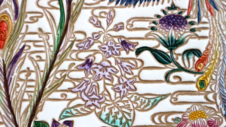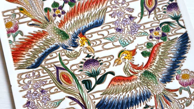 鳳凰は桐の花に宿るともいわれているそうで、桐の花も描かれています、🎴花札思い出すわね