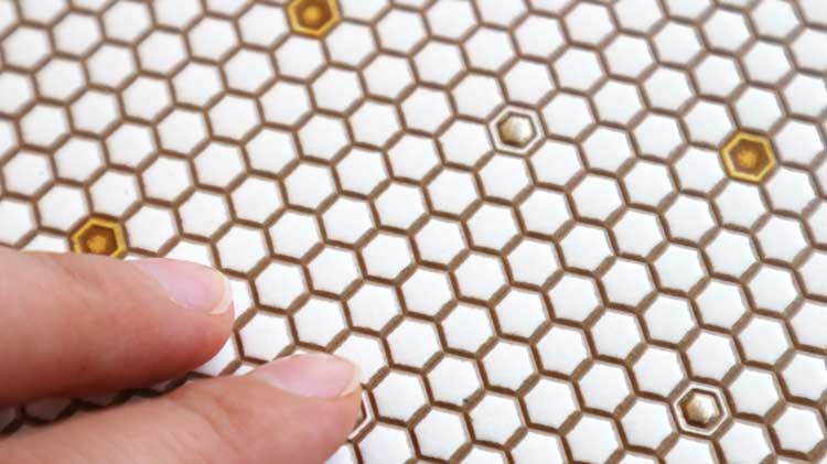 裏面にはハニカム模様がみっちり、蜂の巣の中に入り込んだ気分…そしてこのハニカムの凹凸、手触りが楽しいのです…プチプチぽつぽつしたこの感じもぜひ楽しんでほしいです
