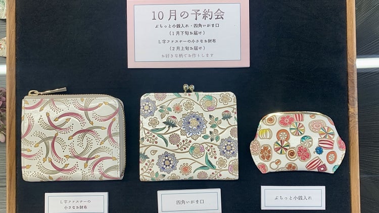 (四角いがま口とぷちっと小銭入れは来年1月末頃のお届け、L字ファスナーの小さなお財布は2月上旬頃のお届けです)