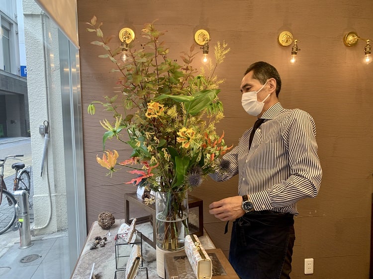 開店前にお花を活けなおす銀座のおしゃれおじさん