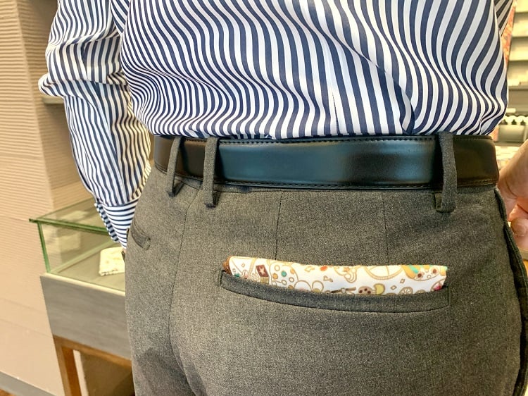おしりのポケットには新柄ピエロのハンカチがちらり🙈
