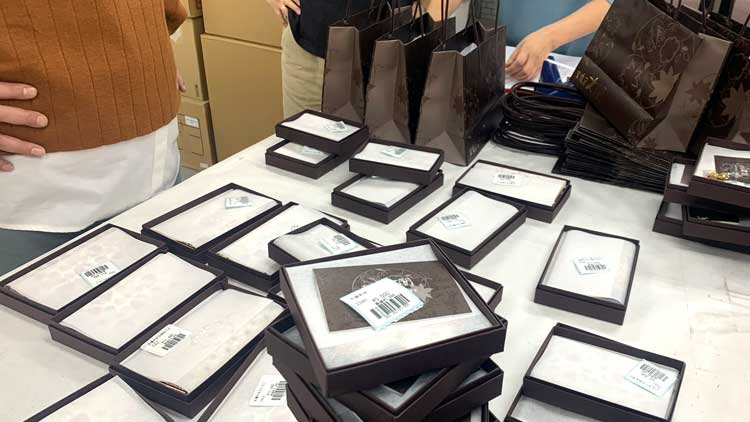 たくさんの商品を前に、思い悩んでいる社員たち…どうしたのかしら。「袋、袋…」とつぶやいています。年末年始の袋といえば、毎年恒例の💡✨!