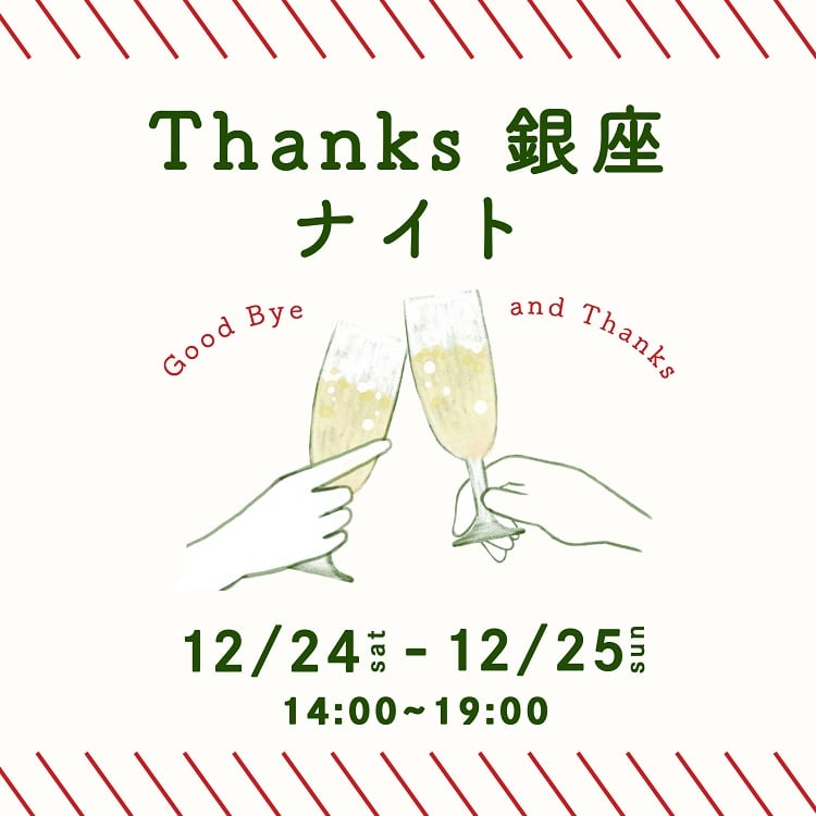 Thanks銀座ナイト 12/24(土)25(日)の2日間 営業時間:11時から19時
