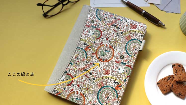 ちょっとスパイスを意識した色を入れていて、お魚の紋のようなモチーフの【▼▽▼▽の緑と赤】はとうがらしの色をイメージしているそう🌶🌶🌶唐辛子~~、意外や意外😲