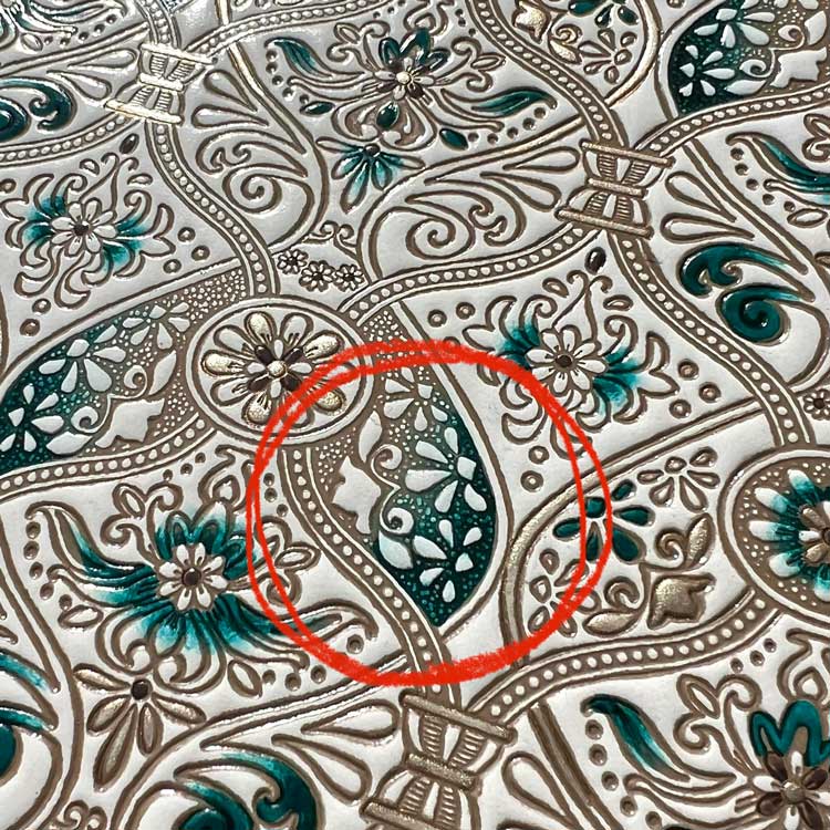 一度色を乗せた後に凸の部分を拭き取って、柄を浮き上がらせます