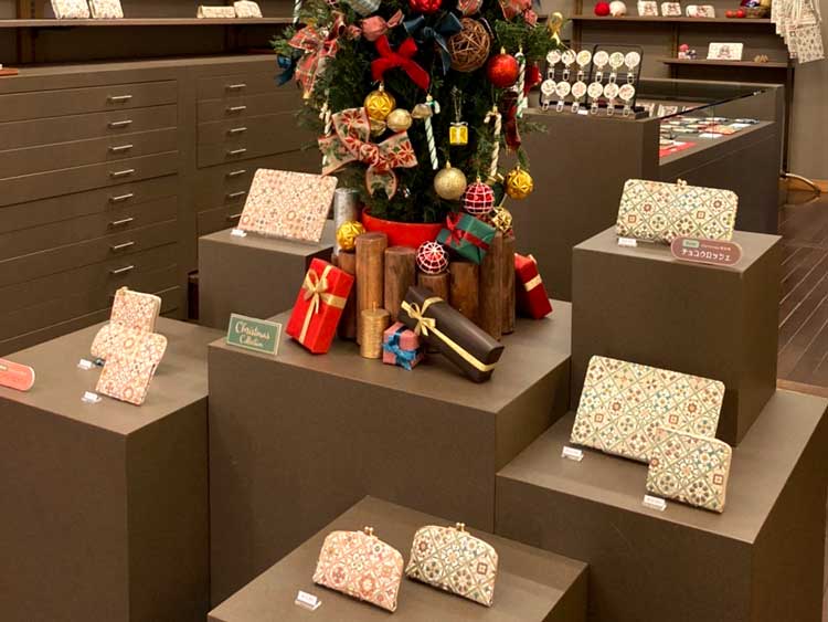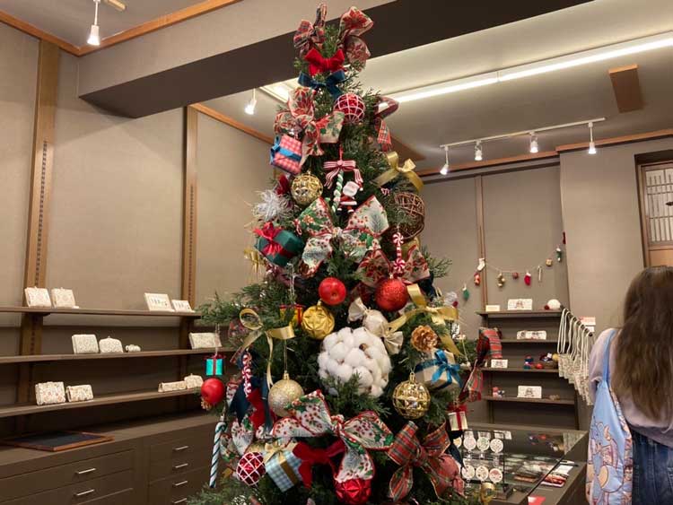 浅草店のツリーは大ぶりのリボンやギフトボックス、オーナメントで賑やかな雰囲気