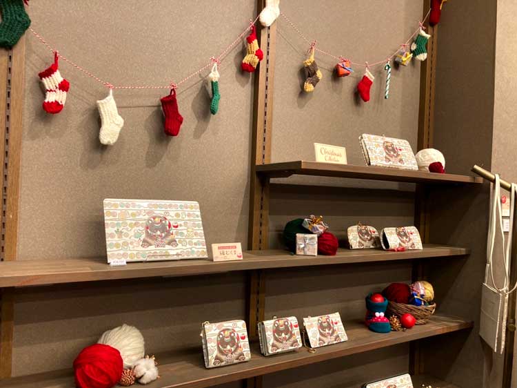 ▼ツリーの下にはたくさんのギフトボックスと今年の新しいクリスマス柄「クロッシェシリーズ」