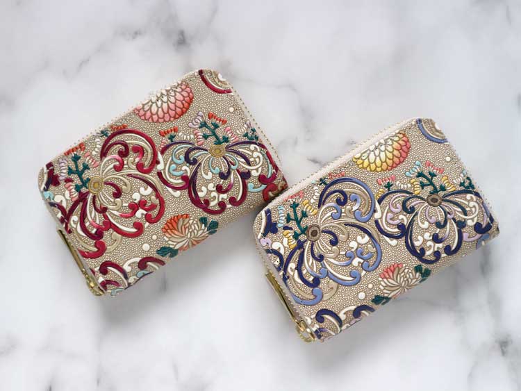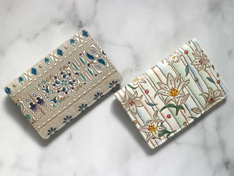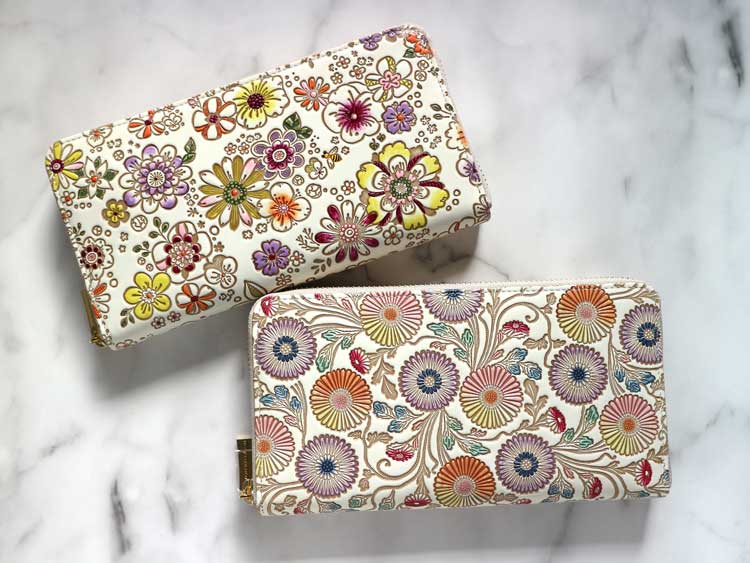 ソラマチ店は照明が明るいので、文庫革の彩色のパールカラーや金彩が特にキラキラ見えるのが楽しいです、