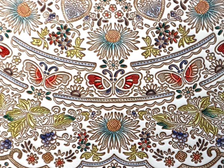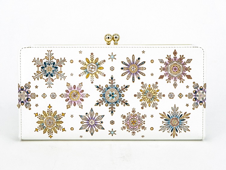 【雪の結晶】は季節問わず予約会ではいつも人気の柄ですね、白革とパールカラーが上品なカードホルダーになりそうです