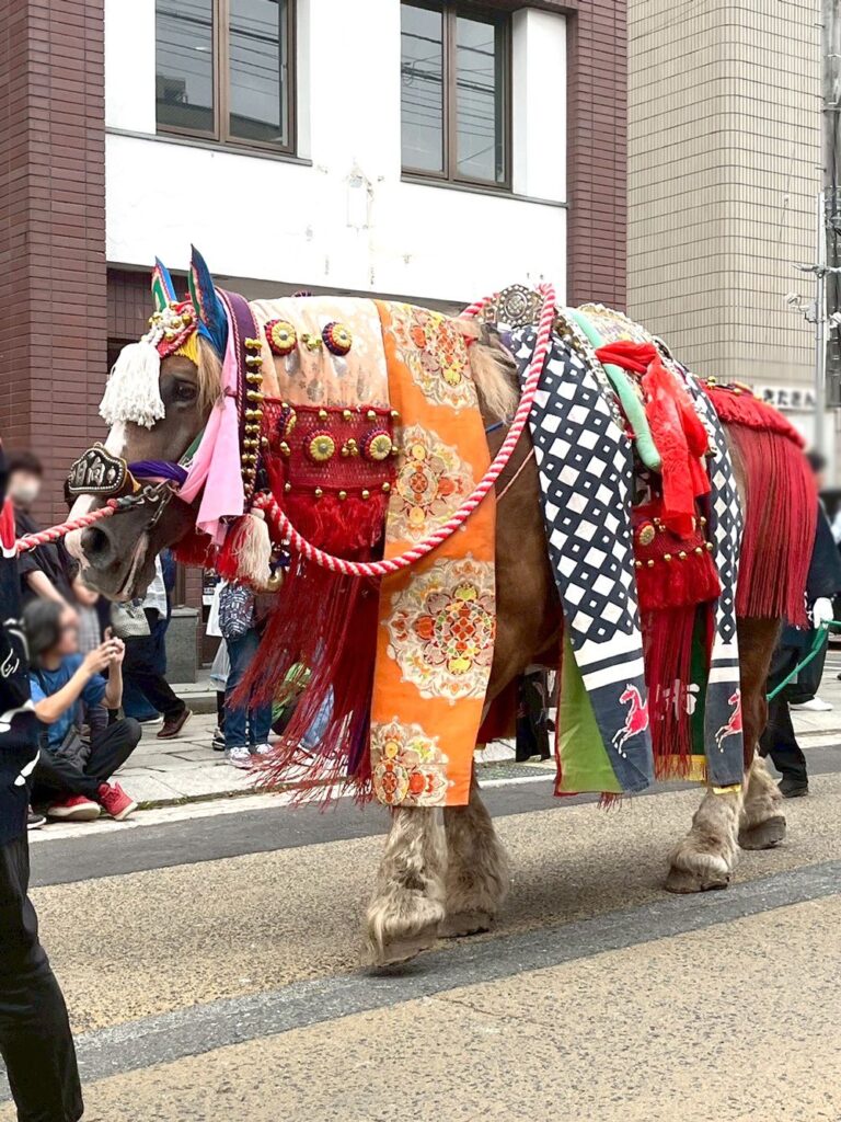 華やかな装束を身に纏った農耕馬が、滝沢市から盛岡市までの約15キロの道のりを行進する伝統行事です。